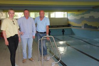 Das Tettauer Schwimmbad in der Schule sorgt seit Wochen für Diskussionen. Mittlerweile fanden auch Ortsbesichtigungen statt, wie hier im Juli mit Bürgermeister Peter Ebertsch und den Fraktionssprechern Michael Müller (BfT) und Anika Nebatz (SPD/ZMT).