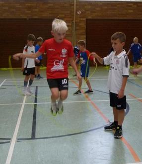Die Workshopleiterin Melanie Schrenk und Sportlehrerin Anke Murkowitz arbeiteten mit den Schülern an verschiedenen Sprungtechniken. Durch Einzelsprünge, Partnersprünge und Sprünge im großen Seil konnten die Kinder nicht nur ihre Schnelligkeit, Ausdauer und Kraft verbessern, sondern auch Koordination, Beweglichkeit und Rhythmusgefühl trainieren.