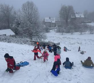 Ende November war es endlich so weit: Der erste Schnee fiel in Tettau und verwandelte den Schulhof und die umliegenden Hänge in eine weiße Winterlandschaft. Diese Gelegenheit nutzten die Schüler der Grundschule Tettau sofort - im Rahmen des Sportunterrichts machten sie sich gemeinsam mit ihren Lehrerinnen Frau Eisermann und Frau Murkowitz auf den Weg zum nahegelegenen Skilift.