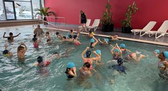 Dort stand ein abwechslungsreiches Programm auf dem Plan: In verschiedenen Spielen konnten die Kinder ihre Fähigkeiten festigen, zur Vorbereitung auf die Schwimmabzeichen schwammen sie 25-Meter-Bahnen, tauchten in die Tiefe und übten das Springen vom Beckenrand und vom Startblock.
