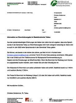 Aus den pandemiebedingten Erfahrungen der letzten drei Jahre hat sich ergeben, dass eine Sprechstunde in der Gemeinde Tettau zur Brennholzvergabe nicht mehr zwingend notwendig ist. Daher wird es auch im Jahr 2023 keine Sprechstunde in den Gemeinde Tettau geben.