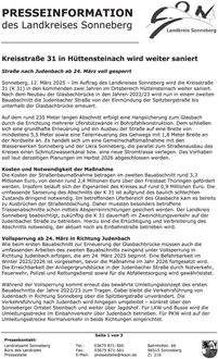 Der Landkreis Sonneberg bittet alle betroffenen Anlieger und Pendler um Verständnis für die Durchführung der wichtigen Baumaßnahme und hofft auf einen störungsfreien Verlauf.