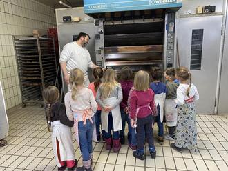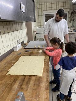 Die Vorschüler des Evangelischen Kindergarten Regenbogen bekamen kleine Verkehrserziehungshefte von der Bäckerei Löffler geschenkt. Da wir uns persönlich dafür bedanken wollten, statteten der Bäckerei einen Besuch ab. Wir durften uns an diesem Tag die Bäckerei und die Backstube einmal von innen anschauen. Nach einem leckeren Frühstück, zeigte Carsten Löffler den Kindern, was man aus Mehl, Hefe und Eiern alles herstellen kann. Im Vorfeld haben die Kinder schon alles über das Korn und das Mehl erfahren und was der Bäcker daraus herstellt. Dann ging es los und alle Vorschüler durften aus Teig selbst Brezeln, Zöpfe und andere eigene Kreationen herstellen. Carsten backte unsere Teiglinge und wir haben uns das leckere Gebäck am nächsten Tag schmecken lassen.