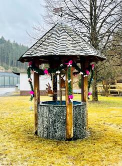 Osterbrunnen Tettau, geschmückt vom Verein Pro Markt Tettau und Karoline´s Blumenladen