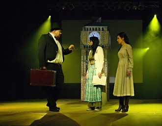 Das Bild zeigt Nancy und Benjamin Baier gemeinsam mit Dr. Michelle Pechtold in einer Szene aus „In 80 Tagen um die Welt“.