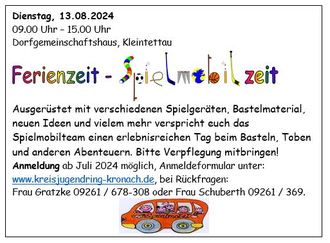 Vorankündigung des Ferienprogrammes im Markt Tettau 2024