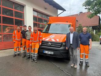 Sie freuen sich über ein neues Nutzfahrzeug für den Bauhof im Markt Tettau (v.li: Nico Schneider, Valentin Bätz, Stefan Wolf, Kim Apel, Bürgermeister Peter Ebertsch und Bauhofleiter Hartwig Ortmann.