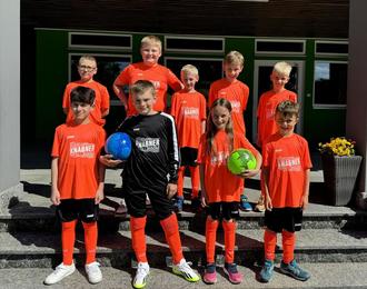 Die Jungen und Mädchen probierten gleich einmal begeistert das neue Outfit an. Ergänzt wurde dies noch von neuen Fußbällen, die die Gemeinde für den Sportunterricht anschaffte. Nun steht dem nächsten Turnier, welches schon am 19.07.2024 auf dem Rasenplatz des KZG in Kronach stattfindet nichts mehr im Weg.