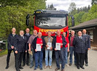 Für die kleinen Gäste wurden zwei Feuerwehrkleinfahrzeuge mit Pedal-Antrieb der Feuerwehr Tettau organisiert. Für die größeren Gäste stand das Neufahrzeug TLF 4000 der Feuerwehr Tettau zum Bestaunen bereit. Über die neue Technik staunten einige ältere Kameraden und kamen gleich noch ins Schwelgen über ihre damalige aktive Zeit. Das Highlight der Veranstaltung waren mehrere Vereinsehrungen für langjährige Vereinsmitgliedschaft und außerordentliche Verdienste.