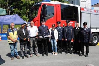 Kreisbrandrat Frank Fischer dankte allen Beteiligten, wünschte eine immer unfallfreie Fahrt und wenige Einsätze. Er ob hervor, dass die Feuerwehr rund 30.000 Euro aus Eigenmitteln zum Erwerb etwa der acht notwendigen LKW-Führerscheine (20.000 Euro), des Rolltors für das Gerätehaus (6.000 Euro) sowie der Mehrkosten für die Rosenbauer Tragkraftspritze (3.000 Euro) und Wasserwerfer (2.000 Euro) beigesteuert habe, dies sei beispielhaft und im Landkreis wohl einmalig.