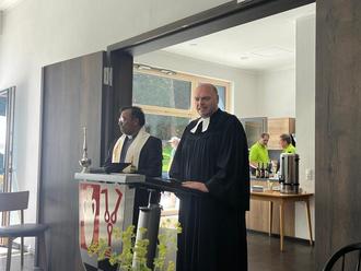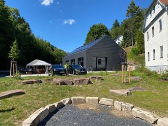 Ein Haus für Groß und Klein, das den Schauberger Gemeinschaftssinn hochleben lässt. Auch Bernd Steger, weiterer Stellvertreter des Kronacher Landrats, würdigte und gratulierte zur neuen Errungenschaft der Schauberger. Dazu gesellten sich einige Bürgermeister aus anderen Kommunen des Kronacher Landkreises und auch die Amtskollegin aus der nur wenige Meter über dem Fluss Tettau entfernten thüringischen Gemeinde Föritztal, Silke Fischer, stattete dem Festakt einen Besuch ab. Seinen Segen erhielt das neue Dorfgemeinschaftshaus schließlich durch die beiden Pfarrer Cyriac Chittukalam (katholisch) und Michael Berger (evangelisch). Menschen aufeinander zu statt voneinander wegbewegen - das funktioniert nur mit Orten der Begegnung. Zeit für Begegnungen blieb im Anschluss genügend bei Bratwürsten und Kaltgetränken. Die benachbarte Firma Rösler CeramInno überraschte das neue Nachbargebäude außerdem noch mit einem eigens angefertigten Porzellanset.