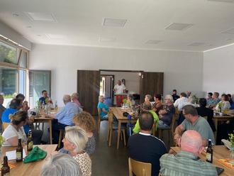 „Heute wird ein neues Kapitel der Schauberger Dorfgeschichte aufgeschlagen. Das neue Dorfgemeinschaftshaus bietet nicht nur Raum für die Schauberger, sondern stiftet Verbindung - zwischen Generationen, zwischen Vereinen, zwischen Nachbarn und Freunden“, eröffnete Peter Ebertsch, 1. Bürgermeister des Marktes Tettau, die Festveranstaltung in der Schauberger Nachmittagssonne am Samstag. Zahlreiche Dorfbewohner sowie geladene Gäste aus Politik und Wirtschaft hatten zur Einweihungsfeier das erste Mal im neuen Gemeinschaftsraum Platz genommen. Hinter dem Rednerpult hatten die Mitglieder des Finkensteiner Stammtisches Position hinter der nagelneuen Theke bezogen, um die Gäste mit Kaffee und kalten Getränken zu versorgen. Passend zur Premiere setzte der Musikverein Schauberg dann den musikalischen Startschuss für den Festakt.