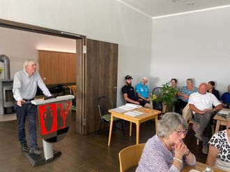 Peter Ebertsch ging in seiner Rede auf den Werdegang des eingeschossigen Dorfgemeinschaftshauses ein, dessen Neubau 2023 begann. Im Zuge der Dorferneuerung und deren Initiative zur Leerstandsbeseitigung im ländlichen Raum erwarb der Markt Tettau zwei Grundstücke mit zwei verwahrlosten Gebäuden in der Schauberger Talstraße und riss diese in den Jahren 2022 und 2023 ab. Der ursprüngliche Plan, ein Gebäude zu sanieren und das Dorfgemeinschaftshaus in das bestehende Haus zu integrieren, scheiterte, da der Untergrund keine ausreichende Tragfähigkeit bewies. Somit wurde ein Ersatzneubau auf dem einen Grundstück mit ausreichend großem Außenbereich auf dem benachbarten Grundstück zum Mittel der Wahl. Ebertsch hob zudem die vorbildfähige Energiebilanz des neuen Gebäudes hervor: „Das Haus läuft energietechnisch gesehen komplett autark. Mit einer Wärmepumpe verbunden mit einer Solaranlage und einem Speicher sind wir energietechnisch optimal aufgestellt. Mithilfe vieler helfender Hände und starker Partner haben wir somit einen Schandfleck im Ortsbild verschwinden lassen und diesen in einen Ort des Miteinanders verwandelt.“ Die Umsetzung des Projektes blieb bis zuletzt dennoch herausfordernd, da beispielsweise für die Gestaltung der Außenanlagen erst keine Angebote eingingen und sich auch bei anderen Bauabschnitten Verzögerungen in der Umsetzung ergaben. Bis kurz vor der Einweihungsfeier wurde noch fleißig gewerkelt und Hand für den Feinschliff angelegt. So hofft der Tettauer Bürgermeister auf „viele tatkräftige Mitmacher und Mutmacher und auf weniger Miesmacher“ und spielte damit auf einige abfällige Bemerkungen und kritische Stimmen in Bezug auf das neue Gebäude an.