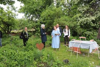 Steffi Traut mit ihrem Wildkräutergarten am Wildberg