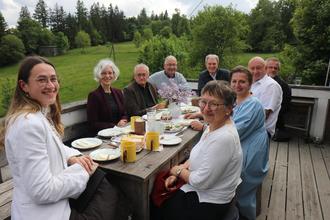Besichtigt wurden dabei die spannenden Kellergewölbe des abgebrannten Hauses, in dem sich noch heute eine hochwertige Wasserquelle befindet. Das ist „ein Keller, der schon drei Brände überstanden hat“, so Steffi Traut. Angedacht ist mit dem Revitalisierungskonzept die Sicherung des historischen Kellergewölbes aus dem 16. Jahrhundert und die Neuerrichtung eines Touristischen Infozentrums Wildberghütte mit einer Außenterrasse, um den ehemaligen Hof-Charakter wiederherzustellen. Das Wildbergcafe belebt schon heute diesen geschichtsträchtigen Ort an der ehemaligen Heer- und Handelsstraße zwischen Nürnberg und Leipzig, den Martin Luther sogar dreimal passiert hat. Die Gäste aus München und Bayreuth lernten den Wildberg dank der Bewirtung im Bauwagencafe gleich als einen Ort kennen, an dem man die Seele baumeln lassen kann.