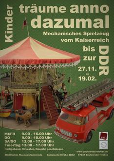 Dampfmaschinen und Puppenwaschmaschine, Schwungradautos und elektrisch angetriebene Traktoren, mechanische Kräne, Modelleisenbahn oder Kindernähmaschine - auch frühere Zeiten hatten einiges an tollen Spielzeugen für die Kinder zu bieten. Die neue Sonderausstellung präsentiert ein unglaublich breites Spektrum von Spielzeugen aus der Zeit von 1880 bis 1989. Dabei wird ein Überblick über die diversen Spielzeughersteller und deren Geschichte gegeben. Im Mittelpunkt stehen aber die mechanischen Spielzeuge aus über einem Jahrhundert. Diese wurden geliebt, belächelt und vor allem bespielt. Viele davon sind bereits in Vergessenheit geraten, andere sind heute gesuchte Sammlerobjekte. Die aktuelle Ausstellung will die jung gebliebenen Gäste in die eigene Kindheit entführen und heutigen Kindern das Spielzeug der Eltern, Großeltern und Urgroßeltern nahebringen. Und vielleicht zeigt sie auch, dass man vor der Digitalisierung der Kinderzimmer auch hervorragend - vielleicht sogar besser - spielen konnte. Eine Ausstellung für die ganze Familie!