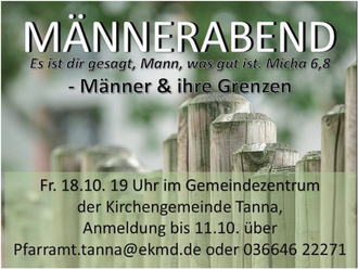 Thema: Männer und ihre Grenzen Anmeldung bitte bis zum 11.10.