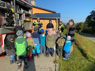 Unsere jährliche Brandschutzübung im Kindergarten erweckte das Interesse der Kinder, ein Projekt zum Thema „Feuerwehr“ durchzuführen. Im Tagesablauf stellten sie nach der Übung viele Fragen zu dem Thema und wollten mehr dazu wissen. Eine Kollegin ist Mitglied der freiwilligen Feuerwehr und griff gemeinsam mit den Kindern das Thema auf. In unserer Einrichtung arbeiten wir angelehnt an die Reggio- Pädagogik, welche in unserem Konzept verankert ist. Somit gestalten und entwickeln die Kinder die Projekte mit und der Erzieher ist der Impulsgeber. Auf Wunsch der Kinder, schrieben wir einen Brief an die Feuerwehr in Langgrün (Kindermund). Nachdem die Brandschutzübung wiederholt wurde, wurde das Projektthema auch im Morgenkreis mit einbezogen. Die Kinder stellten Fragen wie zum Beispiel, „Wie entsteht Feuer?“ oder „Wie kann man das Feuer löschen?“ Sie spielten eine Notfallsituation an einem Vormittag durch. Die fünf W- Fragen wurden von den Kindern somit eingeführt und ihnen nachgestellt. Im Rahmen des Projektes besuchte uns die Feuerwehr von Birkenhügel im Kindergarten. Die Feuerwehrleute zeigten das Feuerwehrauto und die Technik darin. Die Kinder hatten die Möglichkeit, selbst einmal eine Sauerstoffflasche aufzusetzen und auszuprobieren. Später baute der Besuch eine Wasserleitung auf und die Kinder durften mit dem D-Strahlrohr Wasser spritzen. Zum Abschluss des unvergesslichen Vormittags der Kinder, wurden sie in kleinen Gruppen mit dem Feuerwehrauto gefahren. Als Dankeschön schrieben die Kinder einen Brief an die Feuerwehrleute von Bireknhügel. Die Kinder und das Team des Kindergartens bedanken sich für alle Mitwirkenden am Projekt der Kinder.