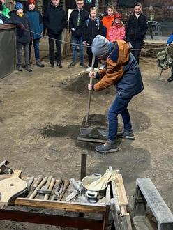 Alle Schritte und Zutaten wurden erklärt und die Kinder durften selbst mit anpacken und die Formen verdichten.