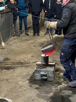 Es gab eine Vorführung in die Kunst des Aluminiumgießens.