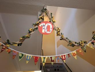 Unser 10-jähriges Jubiläum feierte der Förderverein dann am 5. November 2024. Anlässlich dieser Feierlichkeit, gab es im Foyer des Kindergartens eine kleine Ausstellungsecke. Dabei wurde nochmals anschaulich dargestellt, was unser Verein in den letzten Jahren u. a. für den Kindergarten anschaffen konnte. Ein großes Dankeschön an alle kleinen und großen Künstler!