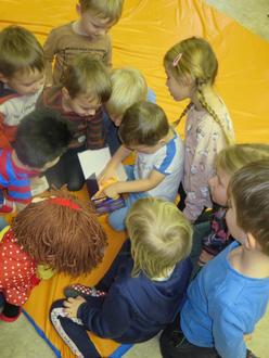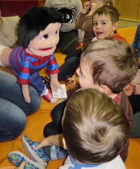 Zwei besondere „Neuaufnahmen“ konnten wir schon verzeichnen, denn dank der Güterverwaltung „Nicolaus Schmidt“ AG Rothenacker sind Mirabella und Robin seit Januar bei uns im Kindergarten. Diese beiden Erzählpuppen sind ein Geschenk und wurden von den Kindern fröhlich und herzlich begrüßt. Es gab viel Spaß bei der Namensgebung. Unter vielen lustigen Vorschlägen (wie Pünktchen oder Frettchen) machten Mirabella und Robin das Rennen. Ganz demokratisch wurde dies abgestimmt und jedes Kind durfte seine Stimme abgeben! Außerdem gehörte noch ein Bewegungswürfel zum Geschenk, der schon fleißig für das Training zu unserer Teilnahme am „Pokal des Bürgermeisters“ vom Saale-Orla-Kreissportbund e.V. genutzt wird.
