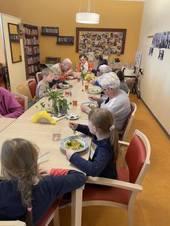 Ganz bestimmt folgt bald wieder ein Besuch der Kindergarten-Kinder in der Tagespflege. Wir danken allen, die dieses besondere Treffen und gute Mittagessen ermöglicht haben.