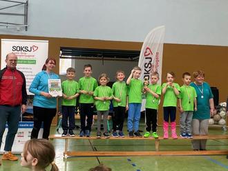 Nun kam es zu der Siegerehrung. Alle Einrichtungen saßen gespannt da und warteten auf ihre Platzierung. Nachdem auch der vierte Platz vergeben war, war den Kindern und Erziehern klar, wir sind unter den besten drei Plätzen. Mit ihrer sportlichen Leistung holten sich die „Bärenkinder“ die Bronzemedaille, erreichten den dritten Platz und qualifizierten sich für das Finale des „Pokal des Landrates“ in Neustadt an der Orla.