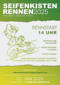 Bereits 9 Uhr lädt der LSV Zollgrün zu seinem traditionellen Zollgrüner Crosslauf ein. Ab10 Uhr findet der Festgottesdienst in der Zollgrüner Kirche St. Nicolaus statt, gefolgt vom feuchtfröhlichem Frühschoppen und anschließendem Kloßessen im Zelt. Besonders spektakulär wird das Seifenkistenrennen am Nachmittag erwartet. Ganztags finden Hubschrauberrundflüge statt und die „Oschitzer Blasmusikanten“ sorgen zum Frühschoppen und am Nachmittag, bei Kaffee und Kuchen, für die musikalische Umrahmung.