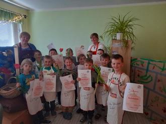 Am Ende erhalten alle Kinder ein Kochdiplom und eine Blume. Selbstverständlich haben alle Kinder bestanden.