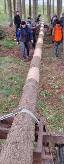 Für das Pfingstbaum stellen am Samstag 18. Mai 2024 wurde der Baum bereits am 19. April in einen Zollgrüner Wald gefällt, Rinde in mehreren Abständen abgeschält und mit fleißigen Helfern im Ort zum Trocknen abgelegt. Besonders haben wir „Älteren“ uns über die rege Teilnahme von jugendlichen gefreut. Es gilt hier diese Tradition an die Jüngeren weiter zu geben. Freuen wir uns auf das manuelle Aufstellen des Pfingstbaumes. Das wird wie jedes Jahr gemeinsam mit unseren Einwohnern und Gästen festlich begangen. Einladungen dazu werden nochmal an jeden Haushalt ausgegeben. Los geht’s am Dorfteich ab 14 Uhr.