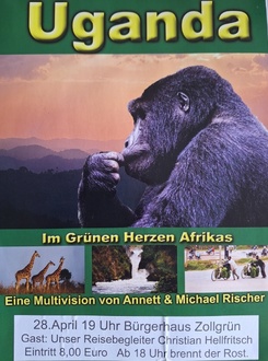Am Sonntag 28.04.2024 organisierte der Feuerwehrverein Zollgrün in Zusammenarbeit mit den Filmemachern Anett & Michael Rischer eine Multivision über das Land Uganda sowie das Hilfsprojekt, welches den beiden seit Jahren sehr am Herzen liegt.