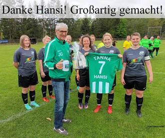 Lieber Hansi, wir bedanken uns ganz herzlich für dein tolles, über 20 Jahre währendes Engagement für den Frauenfußball und unseren Sportverein! Wir würden uns freuen, dich nicht nur zu deiner diesjährigen dann 45. (!!!) Teilnahme am Tannaer Silvesterlauf, sondern auch zu weiteren Gelegenheiten im Sportpark Tanna wiederzusehen!