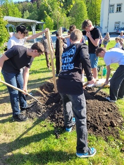 Zum Abschluss pflanzten die Jungen und Mädchen ihren Jugendweihe-Baum, eine Wildkirsche, nahe dem Museum für Gerberei- und Stadtgeschichte in Hirschberg, um danach gemeinsam zu Grillen und den schönen Abend am Lagerfeuer ausklingen zu lassen.