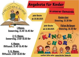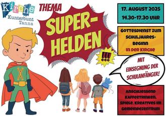 | Tanna | 14.30 Uhr | Kirche Kunterbunt zum Schuljahresbeginn |