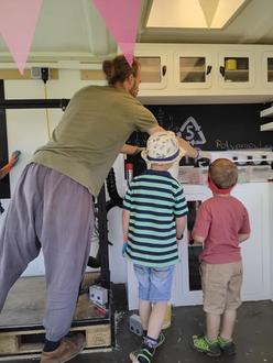 Im Anschluss konnten sich alle bei Kaffee, Kuchen und gegrillten Leckereien stärken oder an verschiedenen Stationen kreativ sein. Zum Beispiel stellten die Erzieher mit den Kindern Holunderstifte oder Seife her. An einer Station wurden Insektenhotels aus Dosen hergestellt. Diese werden im Außengelände angebracht und die Kinder können den Einzug der verschiedenen Insekten beobachten.