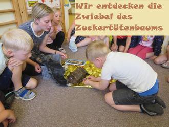 Während die Schulanfänger in ihrer Eichhörnchenzeit unterwegs waren reduzierten sich die Kinderzahlen in den verbleibenden Gruppen. So konnten die Tage noch vielfältiger, individueller und familiärer gestaltet werden. Der Thüringer Bildungsplan ist dabei die Grundlage unserer Konzeption und unseres Bildungs- und Erziehungsauftrages. In unserem Obst- und Gemüsegarten gab es reichlich zu ernten. Erdbeeren, Kirschen und Johannisbeeren, Pfefferminze, Schnittlauch…usw. Aber auch im Zimmer der Wiesenzwerge war die Ernte erfolgreich. 12 herrlich gelbe Bananen konnten vom Baum geholt werden und sie waren soooo lecker! Inzwischen blüht bei den Sonnenzwergen die nächste Pflanze. Wir sind gespannt wie viele Bananen dort wachsen werden!