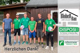 Wie schon 2004 für die Haupthütte erhielten wir einen Großteil des Holzes als Spende von der Firma Rettenmeier Holzindustrie Hirschberg GmbH. Erfreulicherweise stellte uns dazu Lars Rödel mit seiner DISPOSI GmbH Baustoffe * Sonderposten * Vermittlungen sämtliche Baumaterialen für den befestigten Boden und die Dachabdichtung als Spende zur Verfügung. Jonas Blobelt mit seiner Firma Blobelt Bau fungierte nicht nur als Bauleiter fürs gesamte Projekt, sondern stellte als gelernter Zimmermann den eigentlichen Holzbau zusammen mit Kompagnon Lenny Hopf auf die Beine bzw. Pfosten. Unterstützt wurden die beiden dabei immer wieder von verschiedenen Spielern unserer ersten Männermannschaft. Damit das Ganze auch hält, statte Mario Möschwitzer mit seinem Fachgroßhandel für Holzschutz und Befestigungstechnik die Baustelle kostenlos mit Schrauben aus. Alles Gute kommt von oben, aber eben nicht nur das. Regendicht gemacht wurde der Hüttenanbau durch die fachkundigen Handgriffe von Uwe Heubner. Sehr schön war auch die Einbindung der jugendlichen C-Junioren Leon Wolf, Nils Hamme und Simon Bähr, welche das Streichen übernahmen.