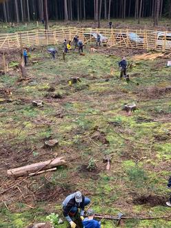 In den letzten Monaten wurden aus unverkäuflichem Käferholz Latten geschnitten und daraus „Hordengatter“ genagelt, etwa 12 km lang, die in kleinen Arealen von 300 - 400 Quadratmetern über die gesamte Fläche der FBG verteilt wurden.