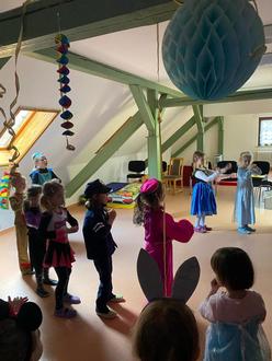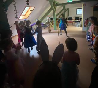 Anschließend ging es auf den Dachboden der als Tanz- und Spielwiese von den Kindern voll ausgenutzt wurde. Es war herrlich zu sehen, wie ausgelassen sie tobten und lachten. Natürlich durften unsere kleinen Faschingstänzer nicht fehlen, diese zeigten stolz ihren einstudierten Tanz vor ihren Freunden. Einige Mutige zeigten im Anschluss ihre eigenen Tänze, von HipHop über Ballett bis Breakdance war alles dabei. Alle Kinder freuten sich unheimlich über die spontanen Tanzeinlagen. So ging der Vormittag viel zu schnell zu Ende und die meisten Narren nutzten den Mittagsschlaf ausgiebig.