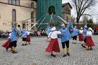 Traditionell sangen wir zur Eröffnung das „7-Täler Lied“ und tanzten traditionell den Bänderbaumtanz um einen kleinen Maibaum.