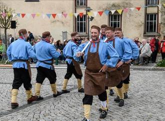 Zwei Tage zuvor wurde in alter Tradition der Baum aus dem Verschlag geholt, der Kranz durch die Vereinsmitglieder gebunden und mit Bunten Bändern geschmückt. So konnte nachdem am Morgen des 1. Mais, der Marktplatz in festlichem Ambiente unter der Maisonne strahlen.