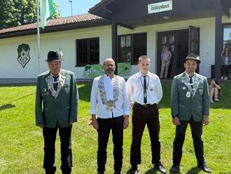 2. Ritter Hans-Jürgen Heß, Schützenkönig Heiko Lieb, Jugendschützenkönig Lukas Lieb und 1. Ritter Michel Grosser (von links nach rechts)