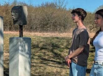 Stella und Jamie vor dem neuen Denkmal