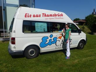 Am 12. Juni 2025 war es endlich soweit, gemeinsam starteten unsere Bewohner und Mitarbeiter in die neue Sommersaison. Pünktlich um kurz vor 09:30 Uhr fuhr das bei Allen lang ersehnte “Eisauto der Familie In der Aue” im Garten vor. Angelockt durch die bekannte Klingel, versammelten sich alle rasch im Verbinder des Hauses.