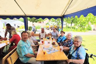 Doch der Besuch des Eisauto’s sollte nicht das letzte Highlight der Woche sein. Am Samstag lud die Gemeinde Döllstädt zum Brunnenfest. Ein Spaß für Groß und Klein. Das ließen sich einige unserer Bewohner nicht entgehen. Gemeinsam mit Fr. Scheele und einigen Mitarbeitern machte man sich auf den Weg. Ein schönes Plätzchen im Festzelt war bereits reserviert. Auch wurde für das leibliche Wohl bestens gesorgt. Ausgestattet mit einer Tasse frischem Kaffee und einem Stückchen Kuchen, ließ man es sich gut gehen. Nach der feierlichen Eröffnung folgte ein Programmpunkt dem nächsten. Die Auftritte der versch. Tanzgruppen und des Kindergartens blieben allen noch lange in Erinnerung. Doch man soll bekanntlich aufhören, wenn es am schönsten ist. So beendeten wir auch unseren Ausflug gegen Abend, selbstverständlich nicht, bevor sich alle noch eine Bratwurst frisch vom Grill haben schmecken lassen.