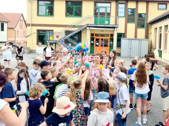 Am letzten Schultag des Schuljahres 2024/2025 wurde es auf dem Schulhof der Grundschule in Dachwig noch einmal besonders feierlich und emotional: