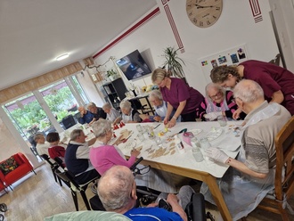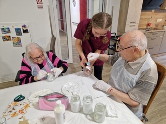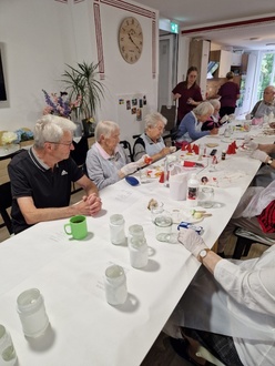 Mit viel Freude und handwerklichem Geschick entstanden dabei farbenfrohe Fliegenpilze, dekorative Blätterkränze und leuchtende Stimmungslichter. „Es ist schön zu sehen, wie die Gruppe beim Basteln zusammenkommt, lacht und Erinnerungen austauscht“, erzählt Betreuungskraft Iris.
