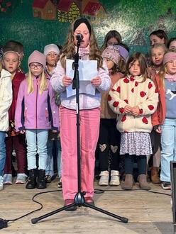Großen Spaß bereitete es nun, auf der großen Bühne zu stehen und das Publikum zu unterhalten. Liona aus der Klasse 3b meisterte dabei souverän die Ansagen.