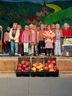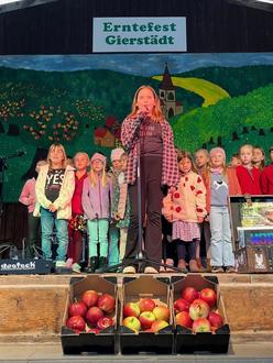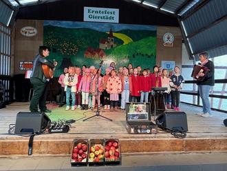 Mit schwungvollen neuen und alten Herbstliedern erfreuten die Chorkinder der Grundschule Großfahner die Gäste zum diesjährigen Erntefest in Gierstädt. Die Schülerinnen und Schüler besangen die Schönheit der Natur, die Farbenpracht im Herbst sowie die köstlichen Früchte, die jetzt in reichlicher Zahl dargeboten werden.